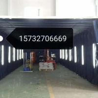 3、伸缩移动喷漆房整体为框架传动结构,每组框架间均有阻燃PVC布密封连接,安装快捷、外形美观,结构精巧,使用方便,制造成本低,节约投资;